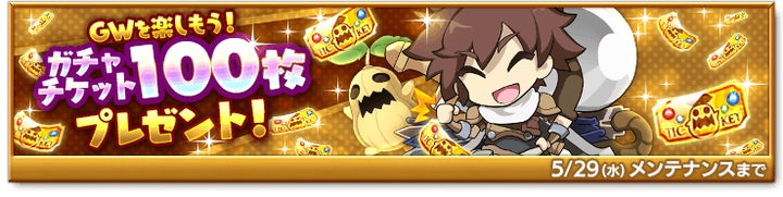 GW記念のプレゼントとして、ゴールデンガチャチケット100枚がもらえます。
