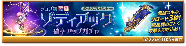 さらに、「ジョブ別ゾディアック確率アップガチャ」も販売中で、覚醒リロード3秒や必殺スキル効果が魅力です。