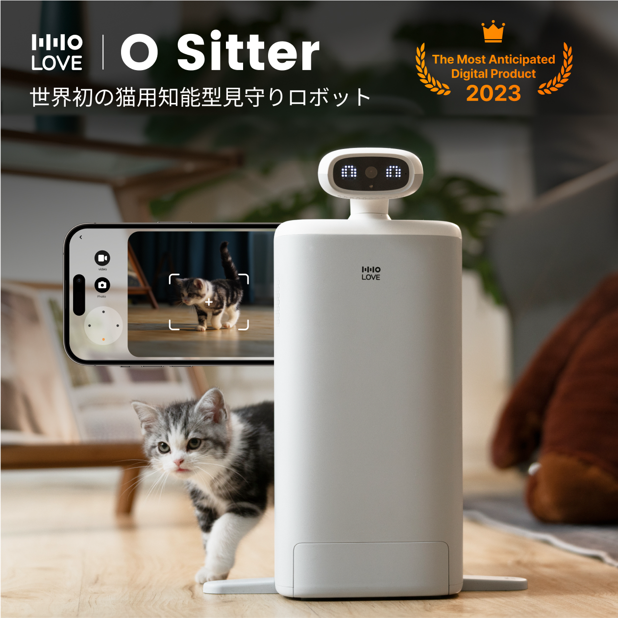 また、6月16日(金)にKickstarterでクラウドファンディングを開始する、猫のためのスマートコンパニオンロボット「HHOLOVE O Sitter」も今回のポップアップショップにて展示します。「O Sitter」は、AIによる24時間の生活記録・遊び・エサやりの3つの機能を持つロボットです。360度・垂直110度のパノラマカメラが、愛猫のささいな動作も見逃さず、飼い主の不在時も必要なケアを瞬時に提供します。