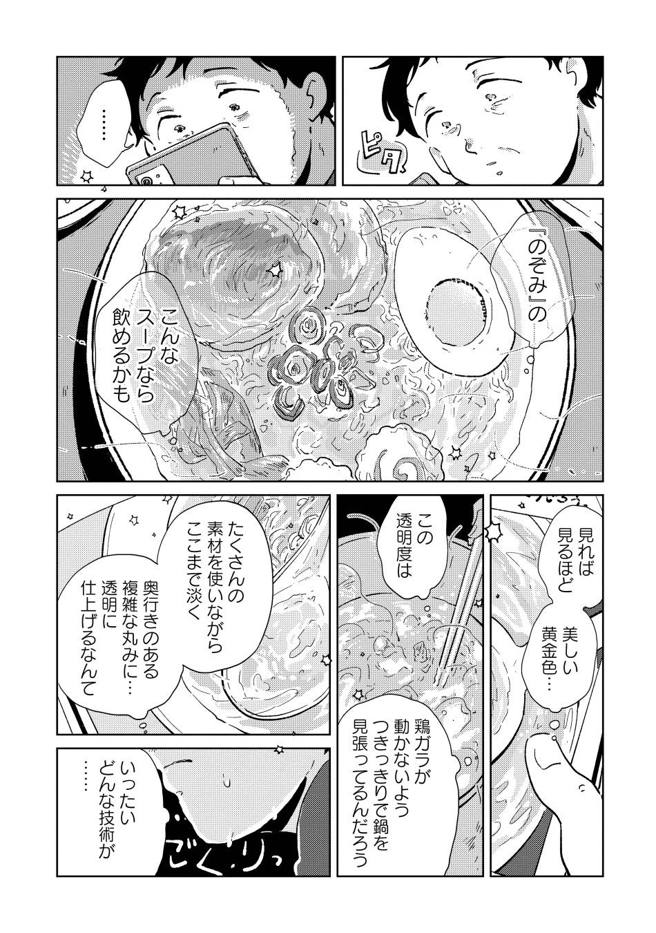 物語はラーメン評論家の佐橋が炎上し、ラーメン屋「のぞみ」の店主との出会いを描いています。