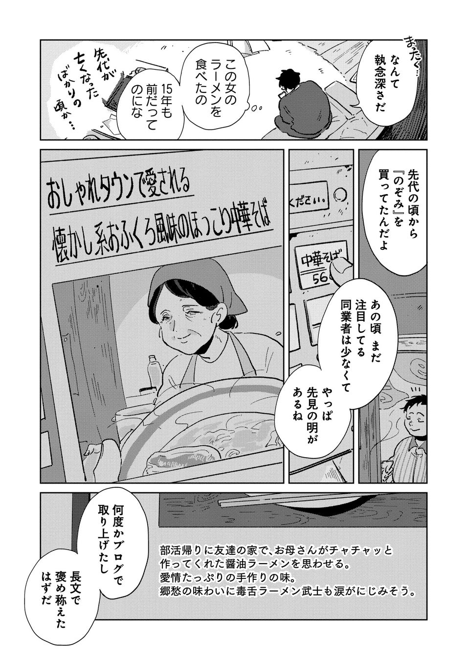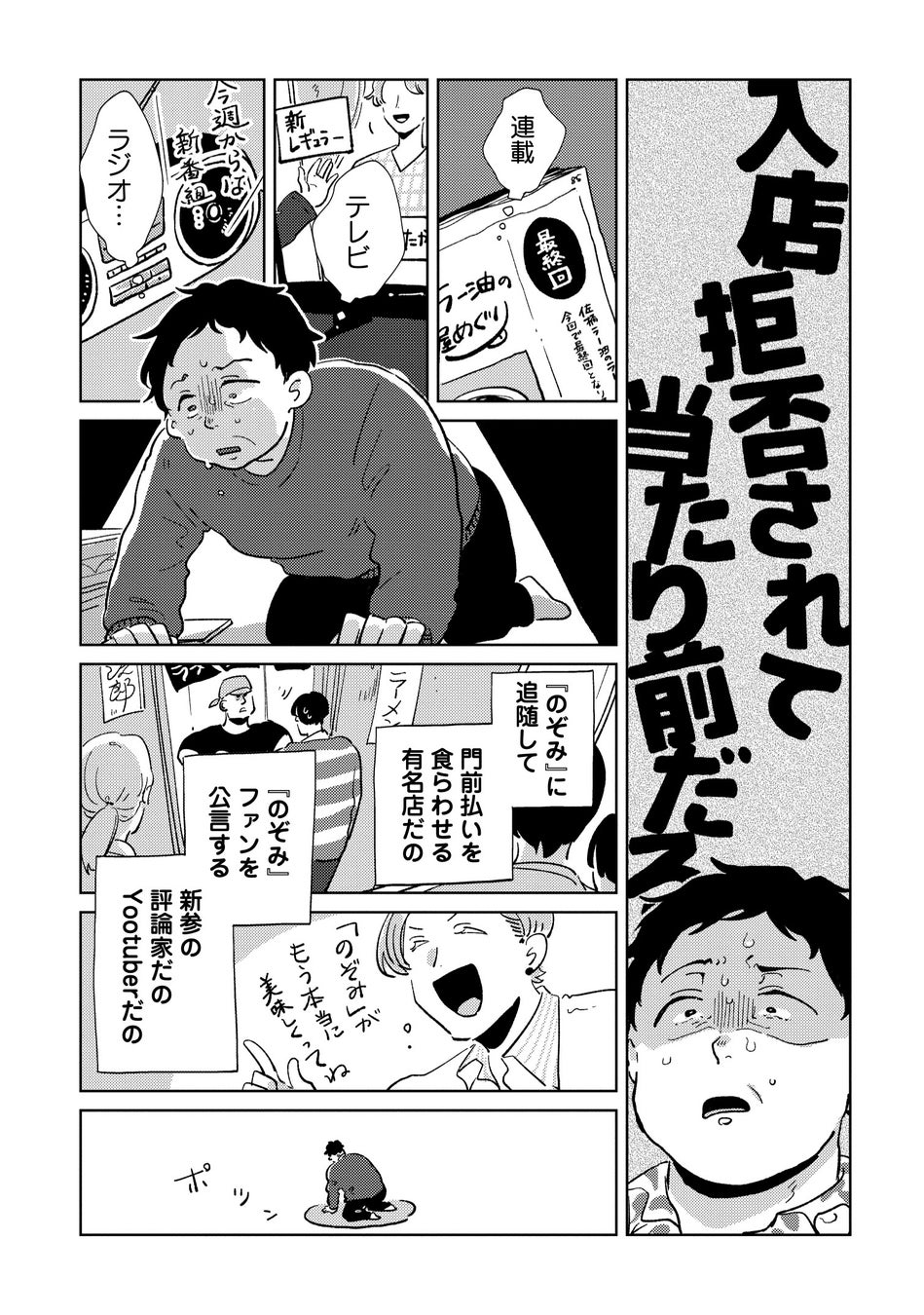 - 物語はラーメン評論家の炎上と「のぞみ」店主との出会いを描く