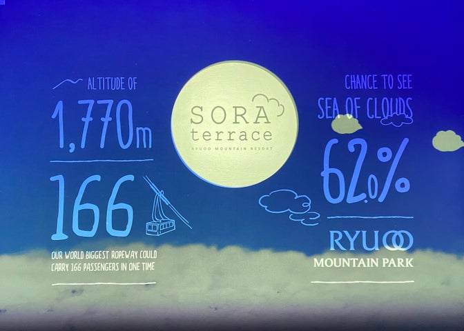 竜王マウンテンリゾートの山頂に位置する「SORA terrace」は、標高1,770mから雲海やサンセットを楽しめる絶景テラスです。