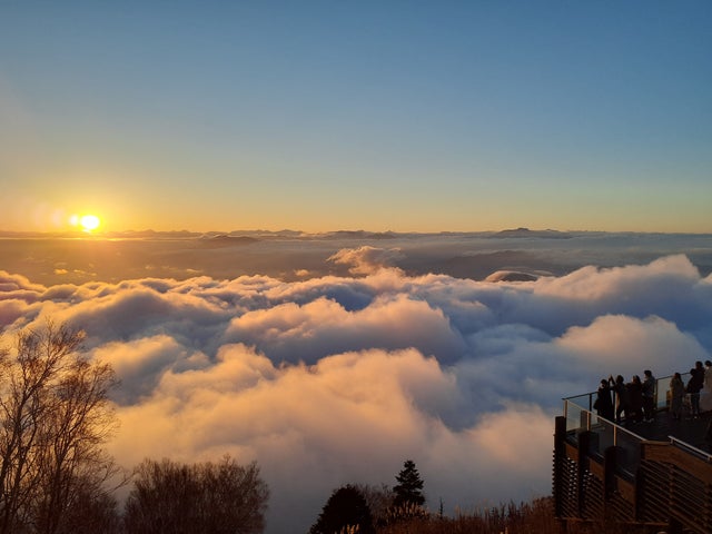 特に夕方には雲海が広がり、オレンジ色に染まる夕日と共に美しい景色が広がります。