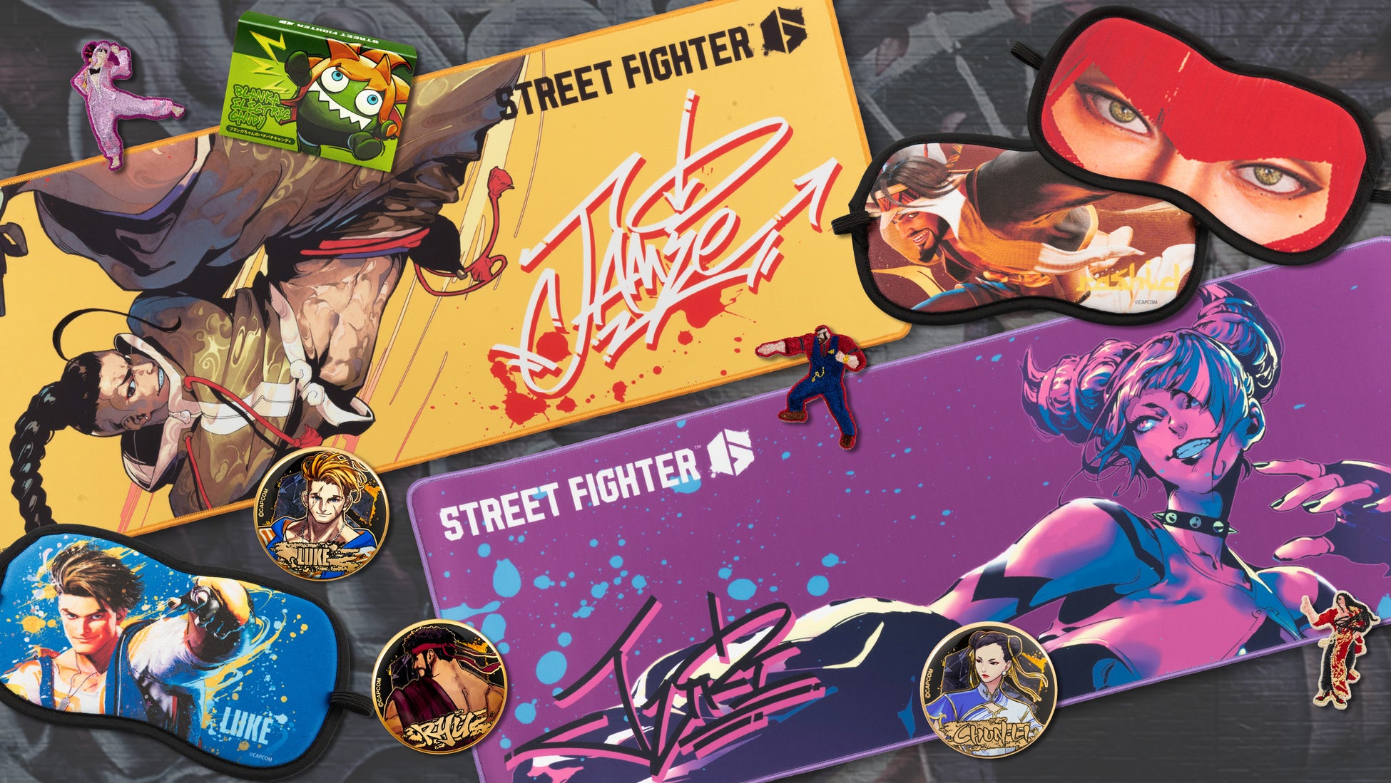 『ストリートファイター6』の公式コラボアイテムが登場!メタルアート缶バッジ18種、大きめサイズのデスクマット5種、リバーシブルアイマスク19種、刺繍ステッカー9種など、ファン必見のアイテムが揃っています。