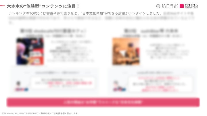 TOP30には日本文化体験ができる店舗も多く含まれており、書道や寿司握りなどが注目を集めています。