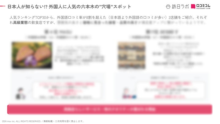 [https://academy.kutikomi.com/whitepapers/202405_inboundranking_restaurant-roppongi](https://academy.kutikomi.com/whitepapers/202405_inboundranking_restaurant-roppongi) レポートにはインバウンド対策や口コミマーケティングのヒントも提供されています。