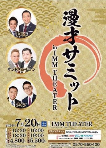 2024年7月20日(土)、中川家、サンドウィッチマン、ナイツの3組による「漫才サミット」が東京・IMM THEATERで開催されます。