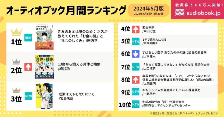 5月のaudiobook.jpの人気ランキングは以下の通りです。