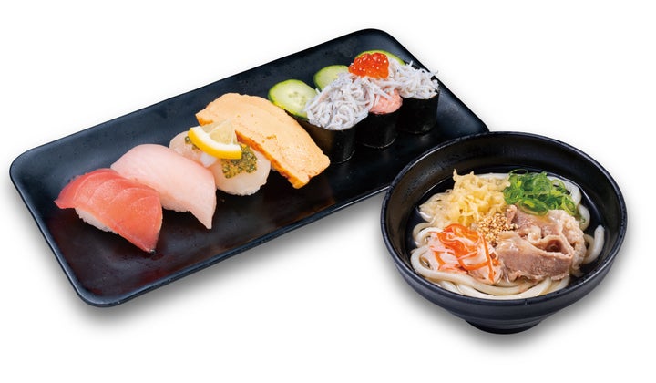 このセットには人気ネタ寿司、五目うどん、オリジナルミニアクリルスタンドが含まれており、全4種類のセットが用意されています。