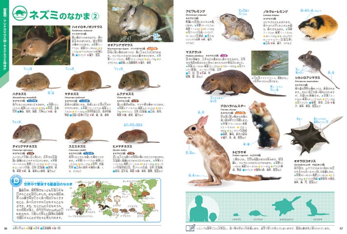さらに、全153の「科」の哺乳類を網羅し、多彩な特集ページも充実しています。