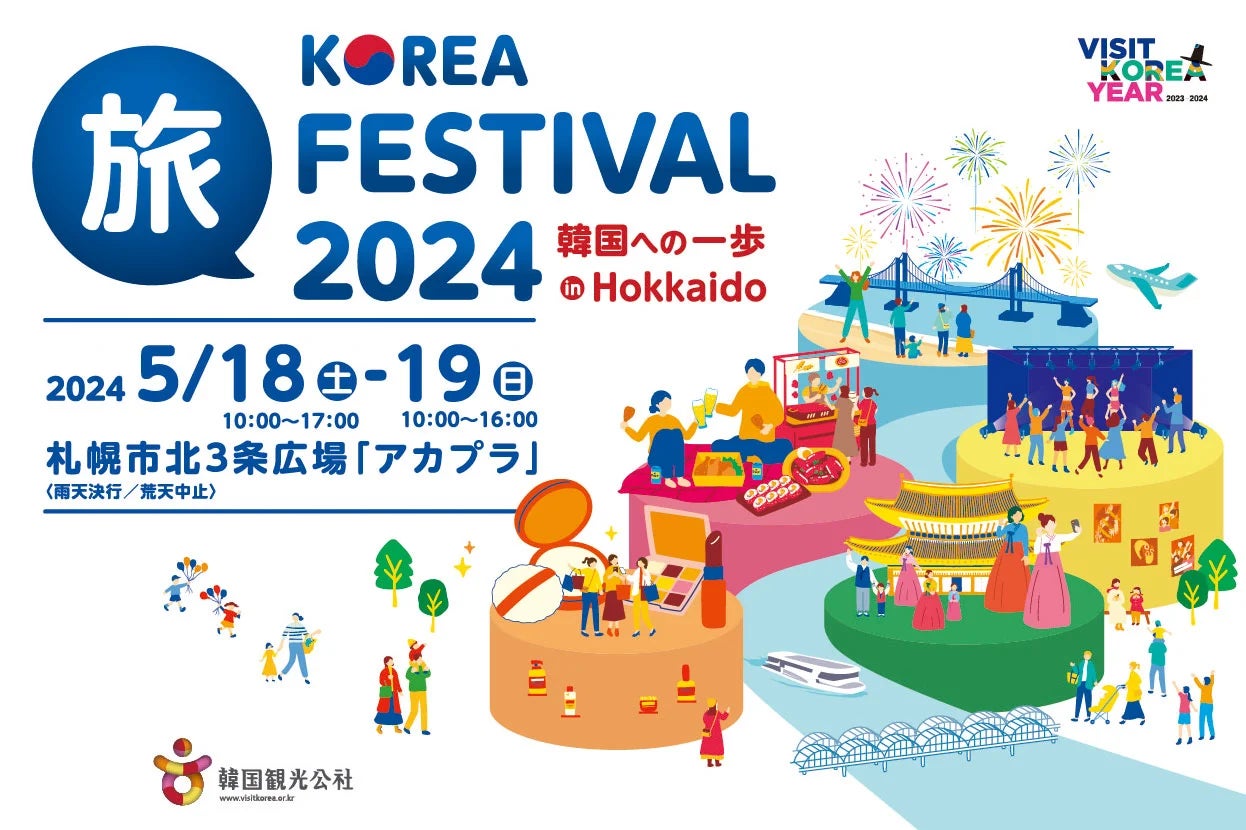 韓国観光公社が北海道で開催する「KOREA旅FESTIVAL2024 in HOKKAIDO」は、5月18日・19日に札幌市北3条広場で開催されます。