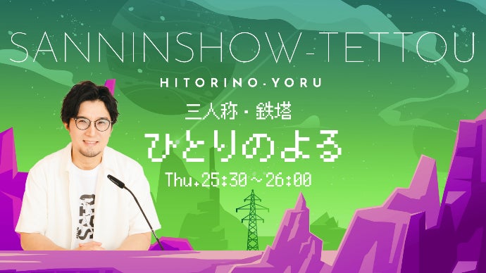 ゲーム実況グループ「三人称」のメンバー・鉄塔が主催する「ひとりのよる」公開収録イベントが7月20日に開催されることが決定しました。