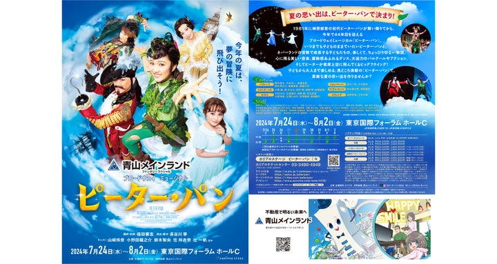 物語はピーター・パンと子供たちの成長を描き、美しい音楽やアクション、客席上空での飛行シーンが見どころです。