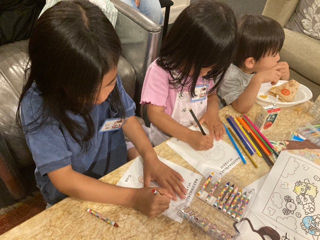 3歳から10歳までの子供たちが楽しみながらお気に入りの曲をレコーディングし、食事やアクティビティも楽しんだようです。