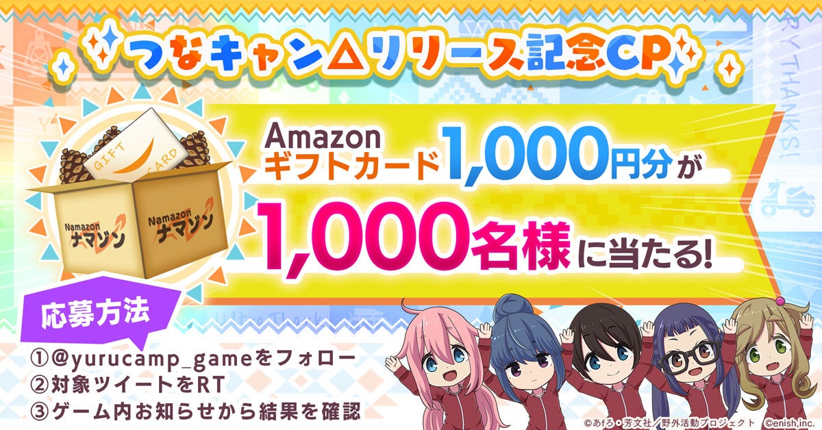 『ゆるキャン△ つなげるみんなのオールインワン!!』の全世界同時配信を記念し、1000円分のAmazonギフトカードが1000名様に当たるRTキャンペーンをTwitterにて開催しております。