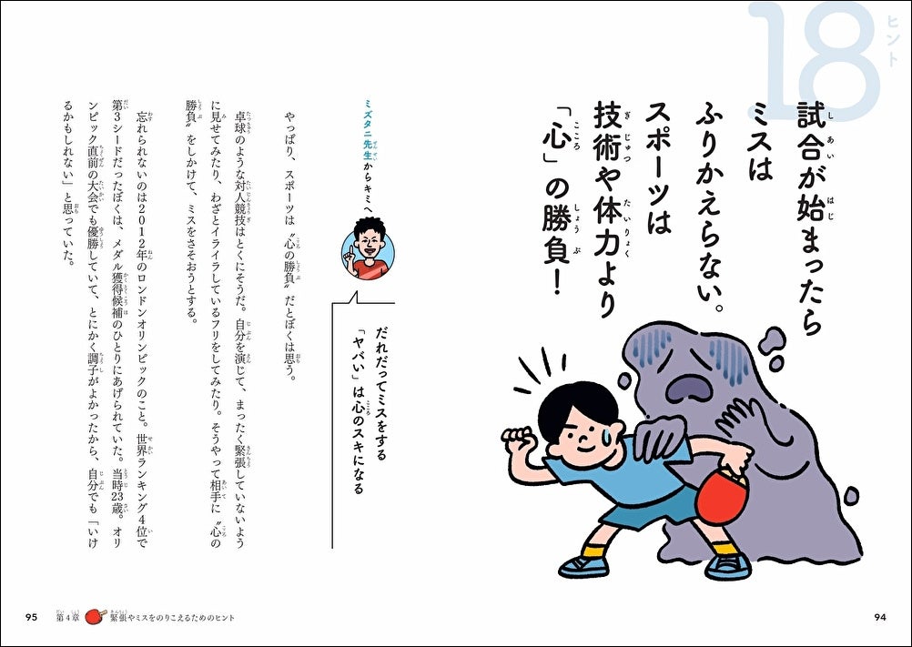 子ども時代から成長し、メンタルの重要性を伝える内容で、逆転勝利の秘訣やミスに対する前向きな姿勢がテーマです。