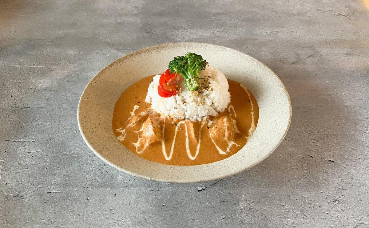 - トマトベースの無水バターチキンカレー、大山鶏むね肉使用