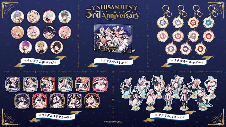 NIJISANJI EN 3rd Anniversary、アクリルスタンド、ホログラム缶バッジ、ランダムクリアカード、アクリルパネル、メタルキーホルダー、ホログラムステッカー