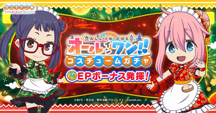 コスチュームガチャでは「チャイナ風メイド」などのオリジナル衣装が手に入ります。