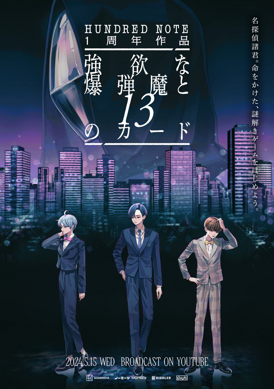 講談社クリエイターズラボIP開発ラボは、『ハンドレッドノート』の1周年を記念して、2024年5月15日からYouTubeで「ハンドレッドノート 強欲な爆弾魔と13のカード」を公開します。