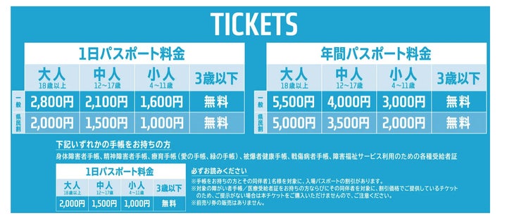 営業時間は平日11:00〜19:00、土日祝10:00〜19:00で、入場料は税込みで、3歳以下は無料です。