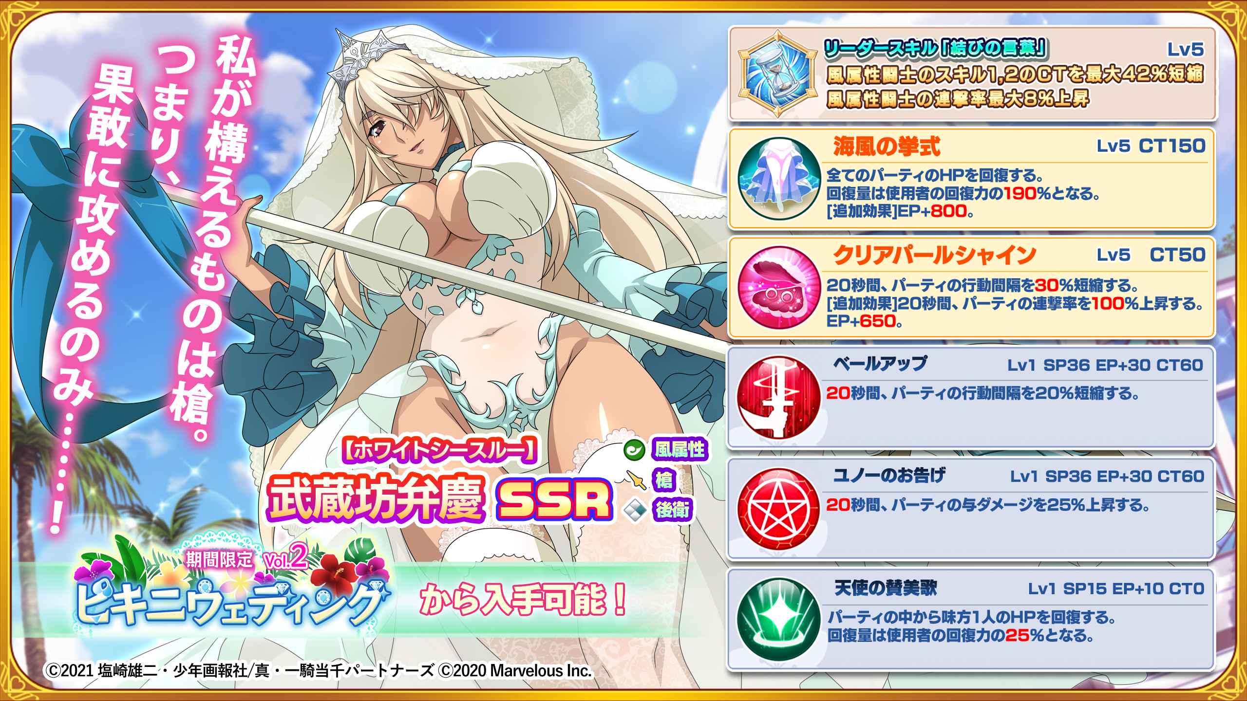新たに「武蔵坊弁慶」が登場し、ビキニウェディングガチャVol.2で手に入れることができる。