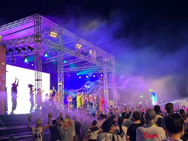 イベントでは1,000トン以上の温泉水を使用し、音楽や飲食を楽しめます。