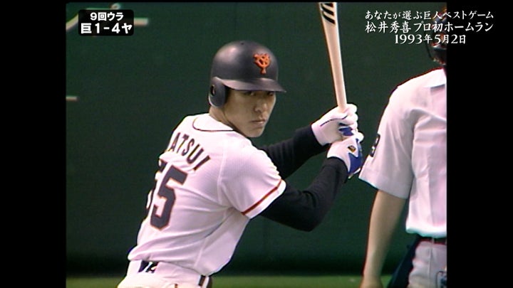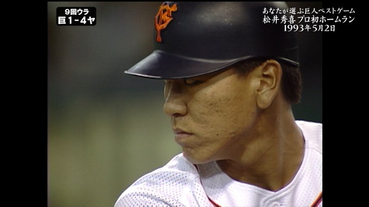 日テレジータスで放送中の「あなたが選ぶ巨人ベストゲーム」では、松井秀喜さんが1993年5月2日に記録したプロ初本塁打の試合を放送しています。