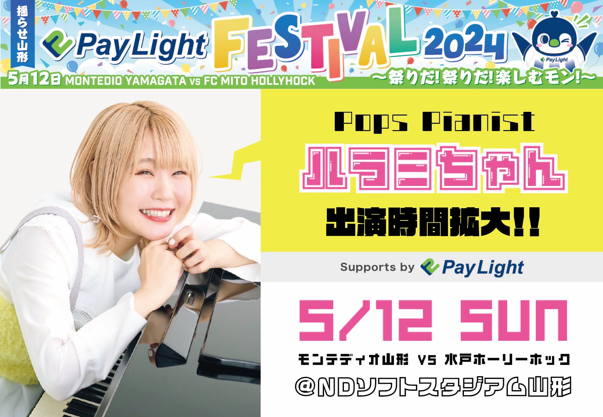 5月12日(日)にNDソフトスタジアム山形で行われるモンテディオ山形対水戸ホーリーホックの試合では、スタジアムイベントの時間変更やハラミちゃんの演奏が注目されています。