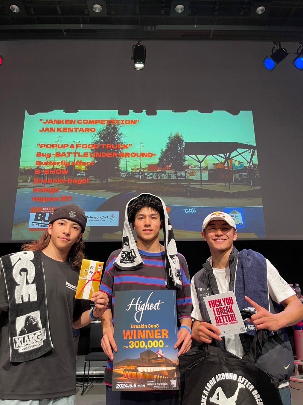 B-boy RA1ONもハイエストでの勝利を喜び、B-boy Shigekixとの3on3バトルで熱い戦いを繰り広げました。