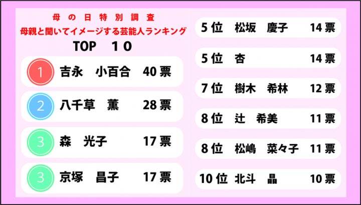 母の日に関するアンケートでは、吉永小百合さんが1位に選ばれ、プレゼントを贈る人は約4割で、カーネーションやお花が人気です。