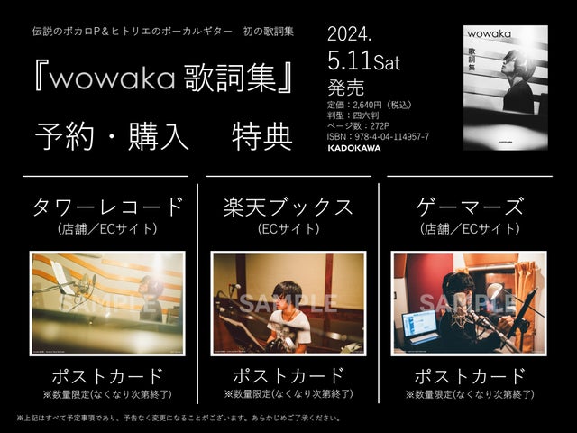 本日発売された『wowaka 歌詞集』には、wowakaの未公開楽曲「NOTOK」の歌詞が収録されています。