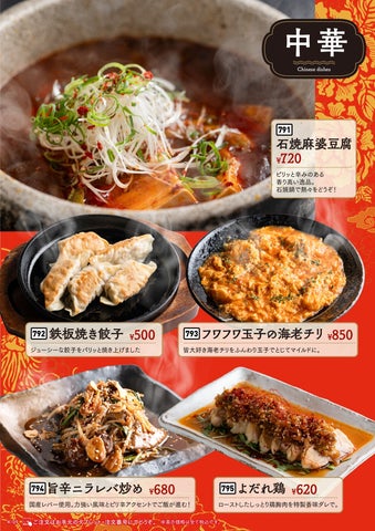 - 新メニューは約80品で、イタリアン、中華、和食などがあり、岡崎弘真氏が監修