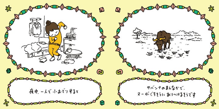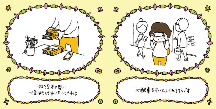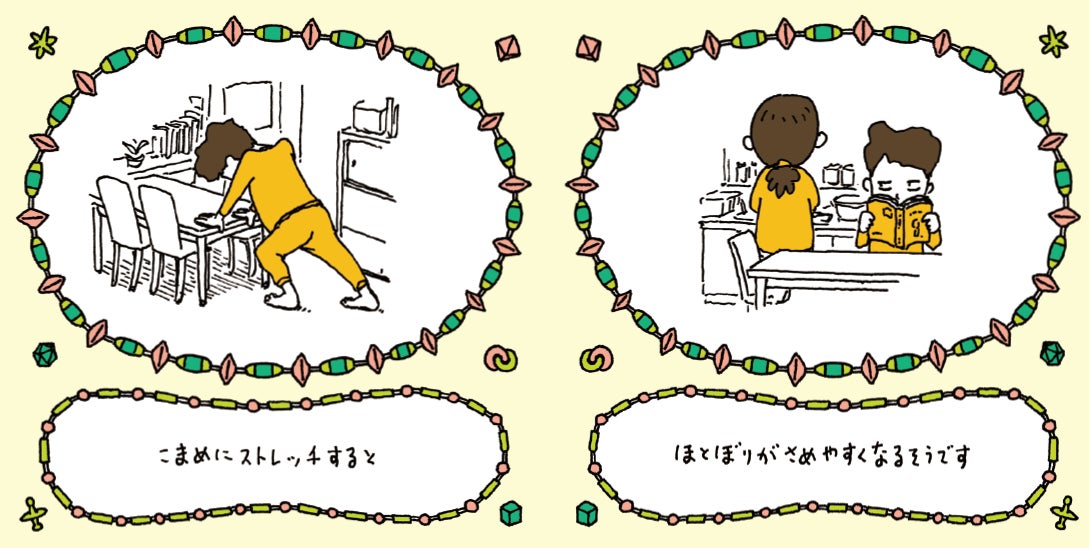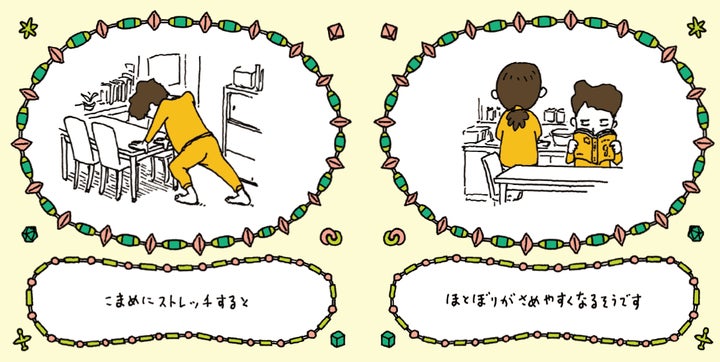 新刊『ちょっぴりながもち するそうです』では、ストレッチやハンカチを使ったおまじないが紹介されています。