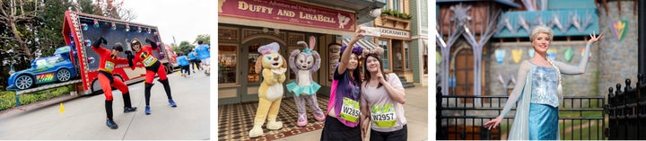 パーク内ではディズニーキャラクターやマーベル・スーパーヒーローズがランナーを応援します。