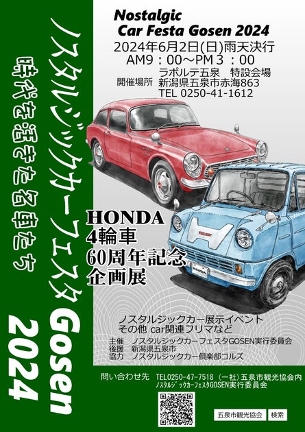 五泉市の交流拠点「ラポルテ五泉」で開催されるクラシックカーイベントでは、1990年以前の車約130台が展示されます。