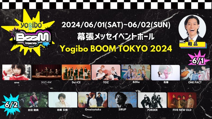 株式会社blowout主催の「Yogibo BOOM TOKYO 2024」が、2024年6月1日(土)及び2日(日)に幕張メッセで開催されます。