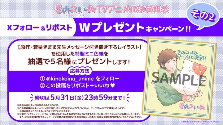 - 原作蒼星きままさんが描いた「きのこいぬ」がアニメ化決定