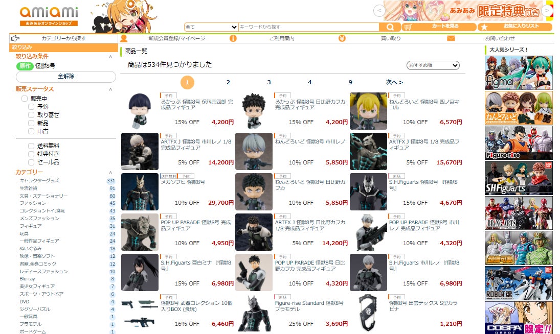 - 「あみあみ」が「コトブキヤ」の『ARTFX J 怪獣8号』シリーズのフィギュアを販売中