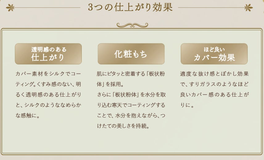 商品は高機能でキメ細かく明るい肌を演出し、保湿成分も配合されています。