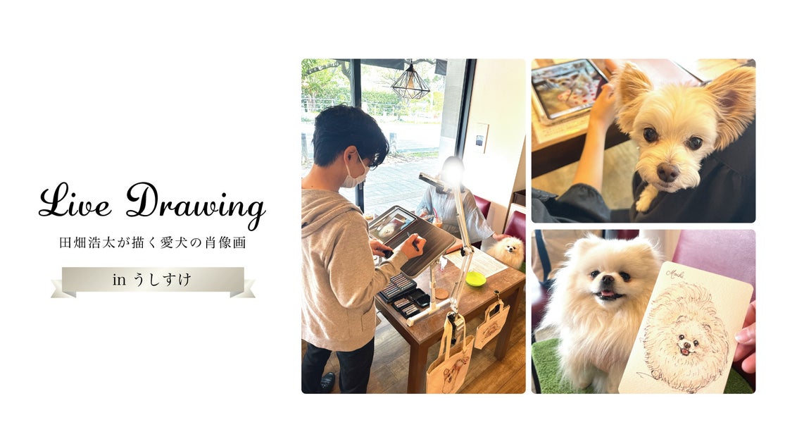 イベントでは愛犬の個性を捉えた似顔絵を制作し、生命感あふれる線と色合いで愛犬の姿を永遠に残します。