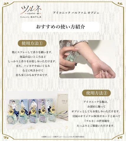 - 最新香水『ツルネ』はキャラクターごとに異なる香り