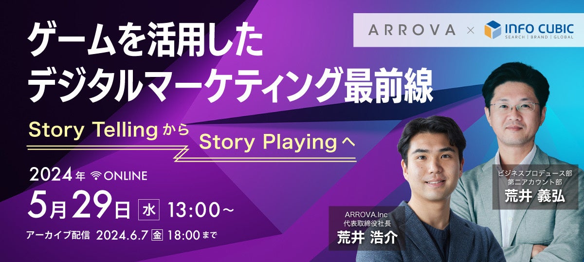 セミナーでは、株式会社インフォキュービック・ジャパンと株式会社ARROVAが登壇し、最新のマーケティング潮流やゲームメディアマーケティングについて紹介します。