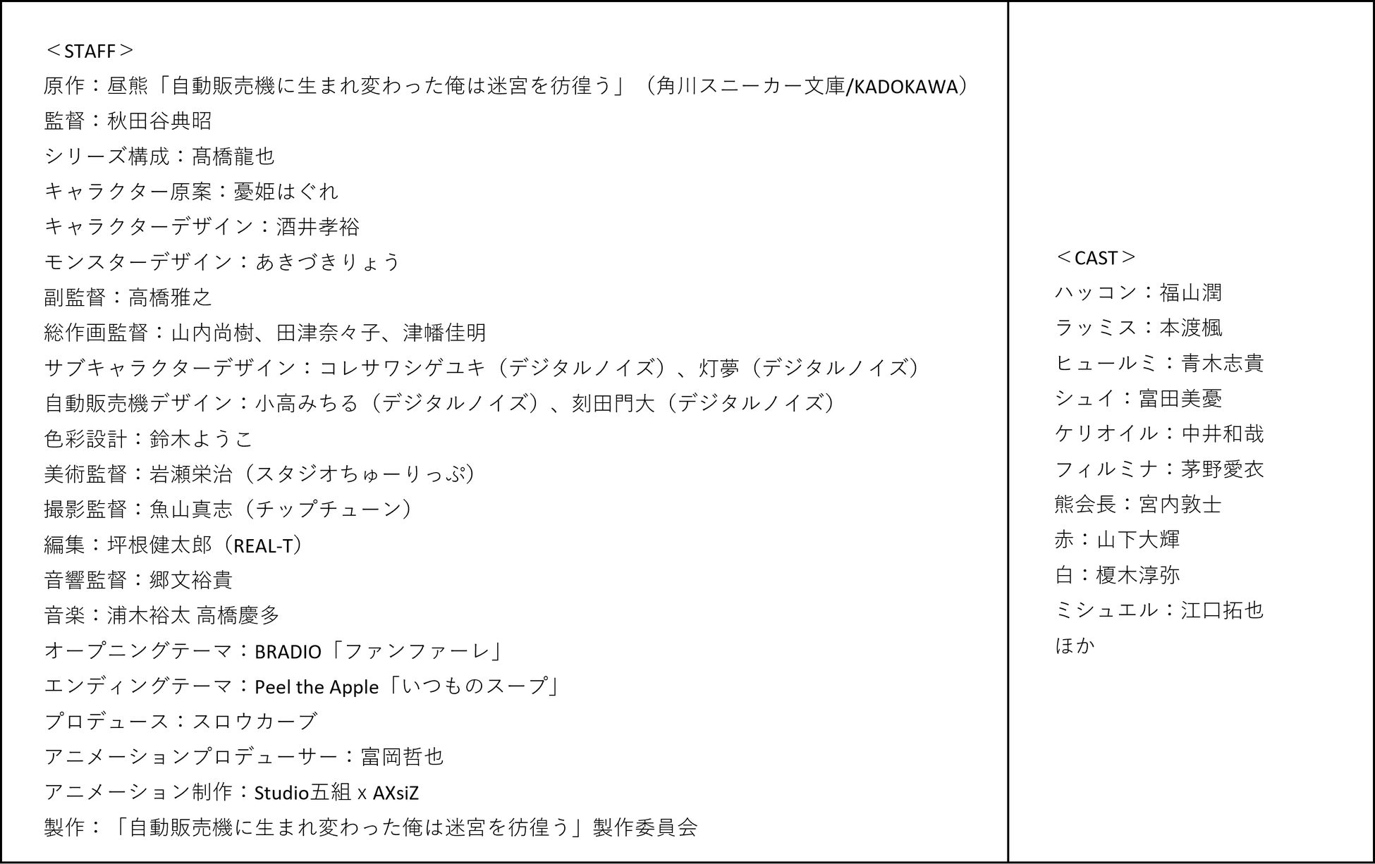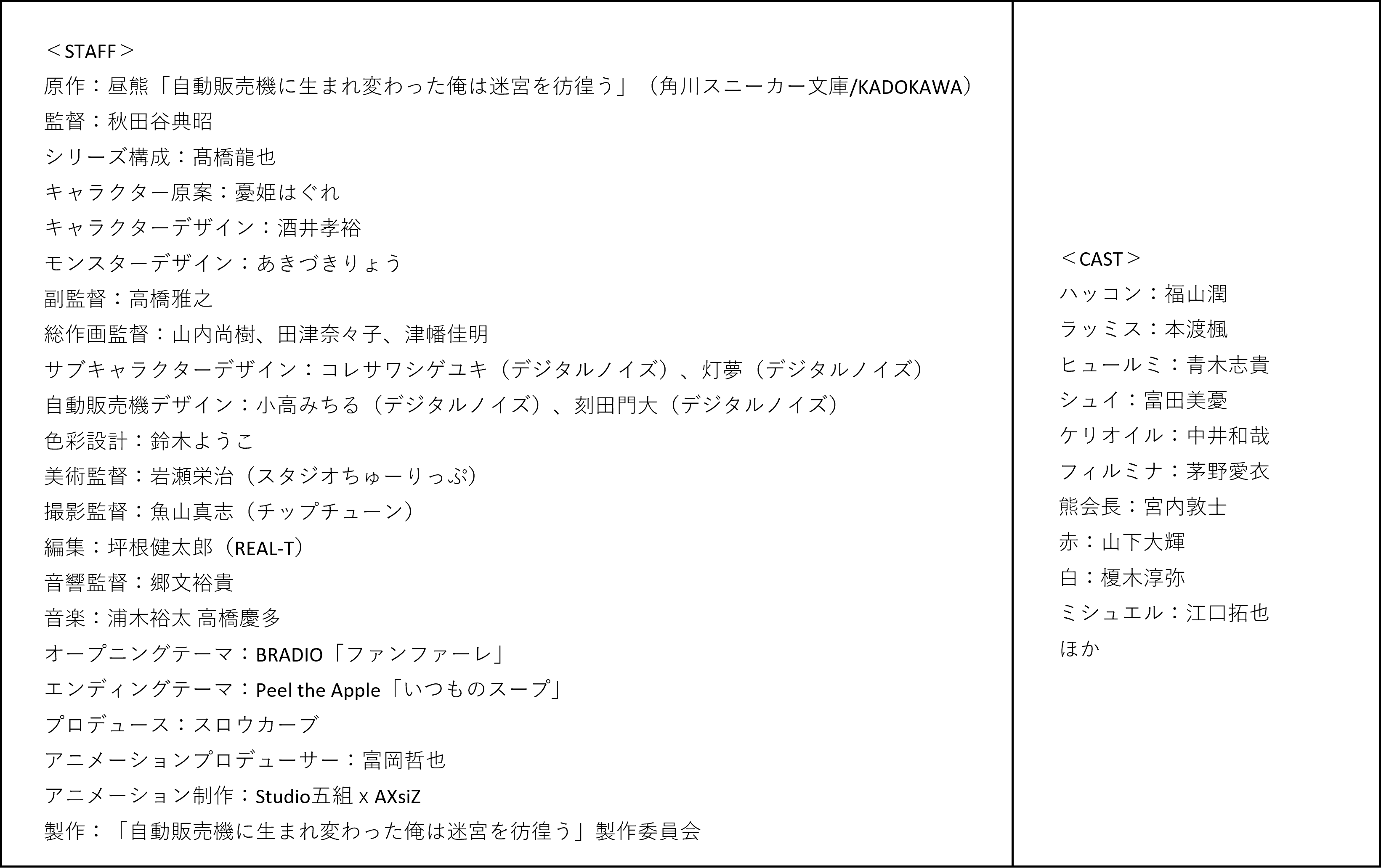 <アニメ「自動販売機に生まれ変わった俺は迷宮を彷徨う」とは>