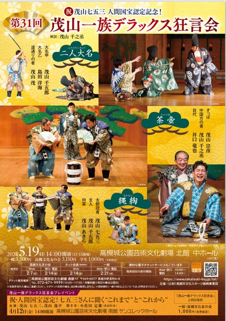 高槻城公園芸術文化劇場で開催される「第31回茂山一族デラックス狂言会」では、人間国宝の茂山七五三さんが演目「縄綯」を披露します。