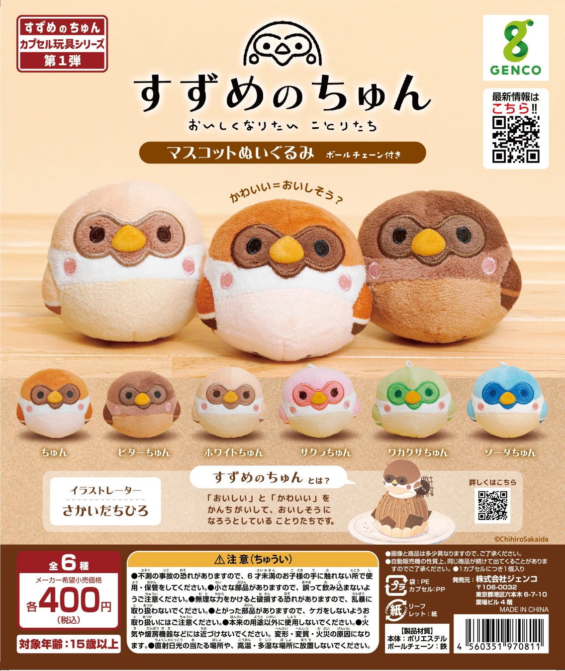 全6種類のカプセルトイがあり、ちゅん、ビターちゅん、ホワイトちゅん、サクラちゅん、ワカクサちゅん、ソーダちゅんがラインナップされています。