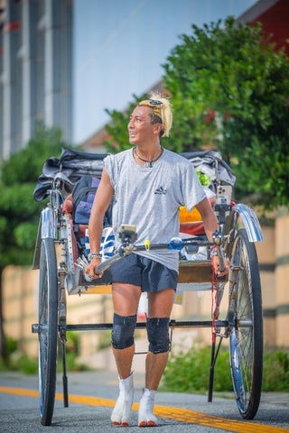 ガンプ鈴木さんは、人力車で世界一周を目指す旅人です。