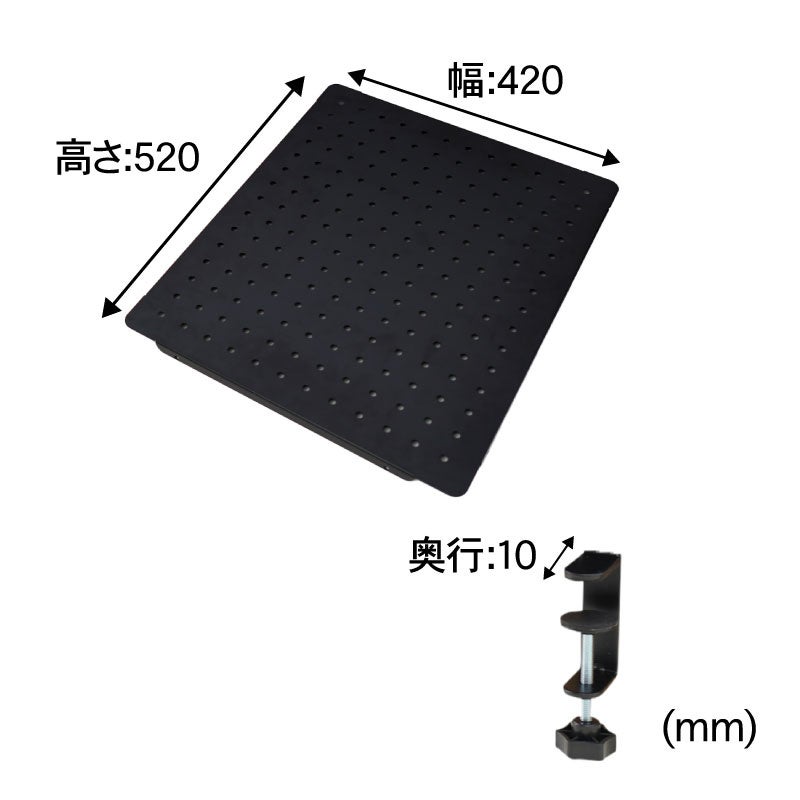 本製品は机に挟み込んで固定ができるクランプ式のスチール製有孔ボードです。