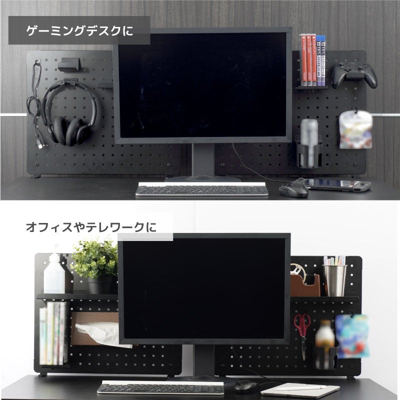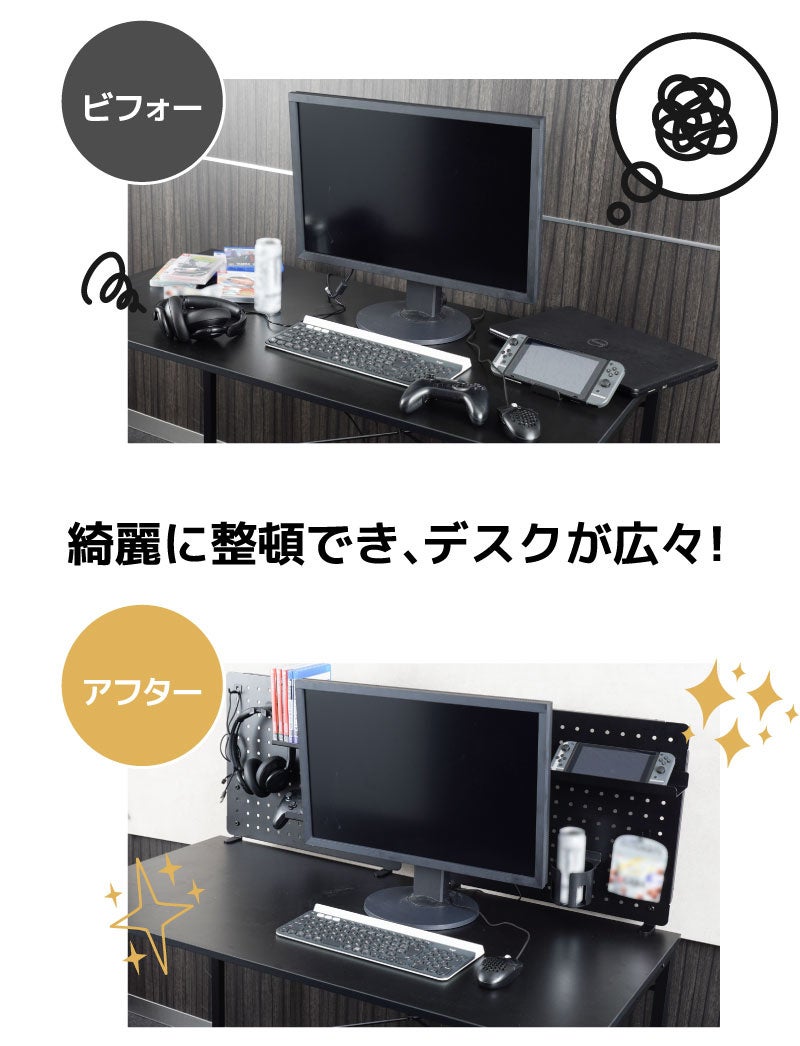 コントローラーやヘッドホン、小物などを掛けて収納したい。机の上の空間を有効に活用したい、そんな方におすすめの『後付けできるゲーミングデスクパネルW』です。