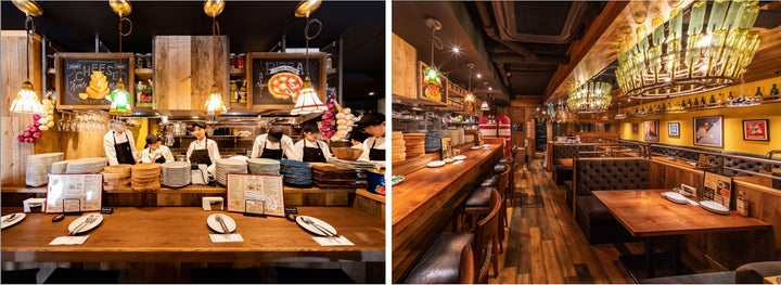 生パスタや石窯ピッツァなど本格的な料理が楽しめ、看板メニューの「のせ放題パスタ」や「カルボナーラ」などエンターテイメント性も満載です。